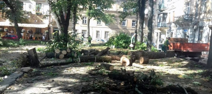 Ulvovi.info дізнались, що небайдужі львів’яни занепокоєні вирубкою дерев у сквері.
